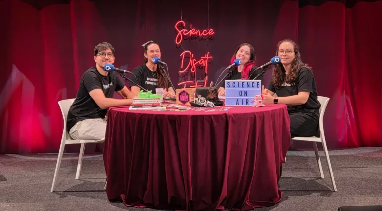 [VIDÉO] Le Science Comedy Show lance son podcast filmé en coproduction avec le Quai des Savoirs ! L’idée de Science disait tout ? Une animatrice pleine de pep’s + 3 jeunes chercheuses et chercheurs réunis autour d’une table pour discuter de sujets scientifiques aléatoires.